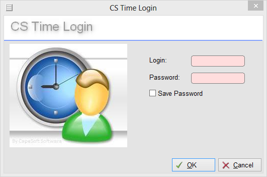 When the Eco TimeLogin window is displayed, enter your Login name and Password. Click OK to continue. The default for logging in, has been set to use "demo" as the login name and as the password.