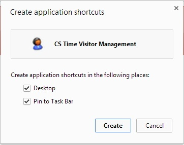 Click on Create. A shortcut to open the webpage in Chrome will now be on your desktop and in your Task Bar