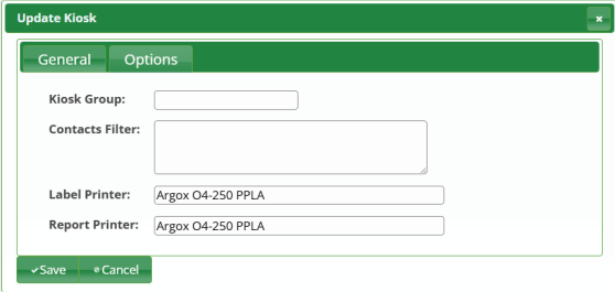 Copy the name of the printer under the General tab and paste it into the ini file. Click on Save to save the kiosk details.